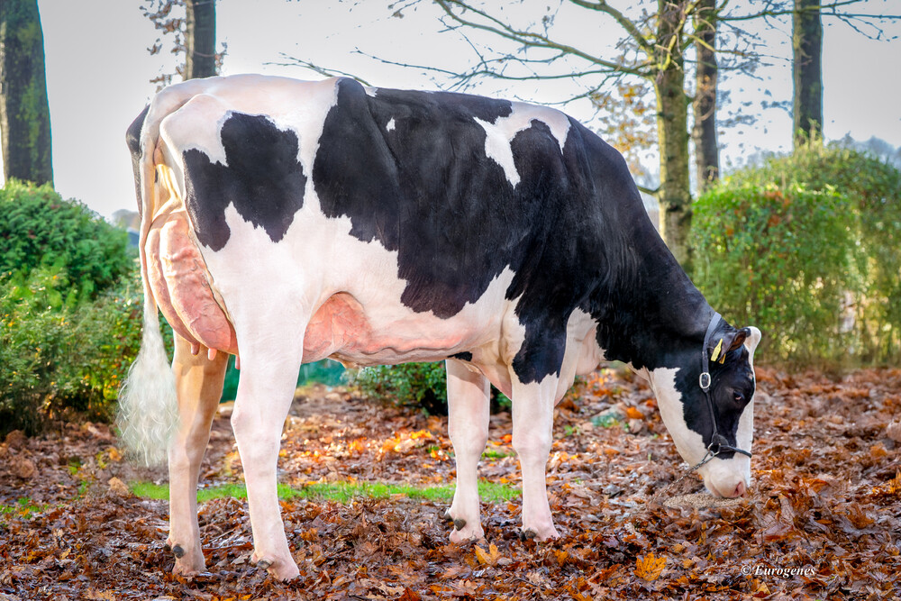 She is a promising Foreman daughter, topseller of the Masterrind Exclusive Sale 2022 and recently pictured and classified, meet Imagine! This Foreman daughter is classified with VG-85-NL 2yr. and is in her 1st lactation projected in 305 days at 10.622kgM with 4.4%F and 3.7%P! She is dam to the +157 RZG / +3224 GTPI / +301 gNVI Real Syn son DG Ike and the +152 RZG / +3244 GTPI / +207 ISU Space son DG Indian. Imagine VG-85 2yr. is from a VG-86-DE Lenovo daughter, followed by Benz daughter Ista VG-88-DE. Ista VG-88 is dam to Ilott P @ Intermizoo and dam to Ronan @ Genes Diffusion. She is from the same family as the 2yr. old Champion Schau der Besten 2017 Seeger's Indiana EX-92-NL and FG Ice, the Res. Intermediate Champion European Show Fribourg 2013!