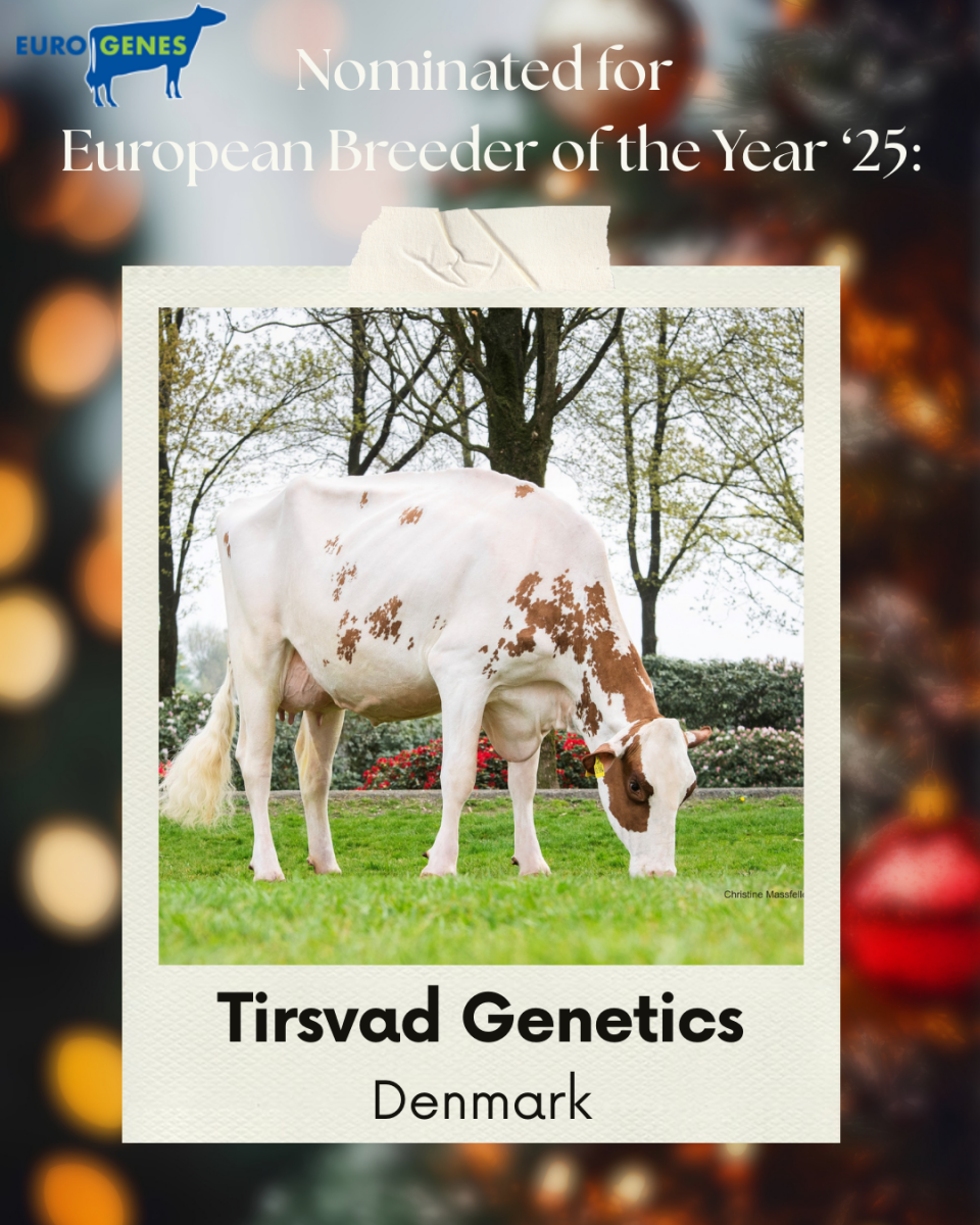 With two of the three bulls, they dominate the NTM genomics ranking for December 2025! An unique moment, because the Nr. 1 NTM sire and the Nr. 2 NTM sire are brothers and are from Tirsvad Freewood Mona Lisa P VG-86-DK 2yr. The Nr. 2 NTM sire is VH Mads P, a polled Mecanico son at 48 NTM. His maternal brother, the Nr.1 NTM sire is VH Sherrif, he is sired by Owen and guarantees +51 NTM. Mona Lisa P VG-86 is straight out of Tirsvad 3STAR Simon Mojito P EX-91 and goes back on Pen-Col Superhero Mistral EX-91. Another interesting cow at Tirsvad Genetics is Amber PP Red VG-86-DK 2yr., she is a polled Solitair P Red daughter and delivered many sires to AI, with for example Member PP Red, Ranking P Red and Ambo P Red