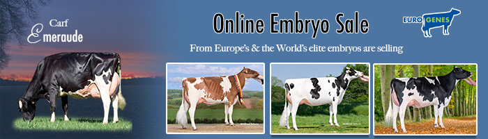 9 de enero de 2026 A brand new and first edition of 2026 of the Eurogenes Online Embryo Sale just started. Many interesting embryo packages are added to the sale with for example Female Mountie-Red (+3008 GTPI / +2.53 PTAT) embryos from MS Latenite Sugar Mummy P Red are selling. She is a polled and R&W Latenite P granddaughter to Blondin Redman Seisme EX-97, the 3x Grand Champion World Dairy Expo. Or Female Haveitall Blakely Hinge (+3242 GTPI / +2.80 PTAT) embryos from Sunibelle Dempsey Esprit EX-96-CH her Arrow granddaughter could be yours! Esprit EX-96 has an amazing victory list with winning for example Senior Champion and Grand Champion Swiss Expo 2024. Bid last on Aurora Howland P (+3348 GTPI / +1.56 PTAT) embryos from Broeklander HiPo H Liza, a Harold P daughter at +3143 GTPI and more 'herdbuilding' packages. Continue reading.. Leer más