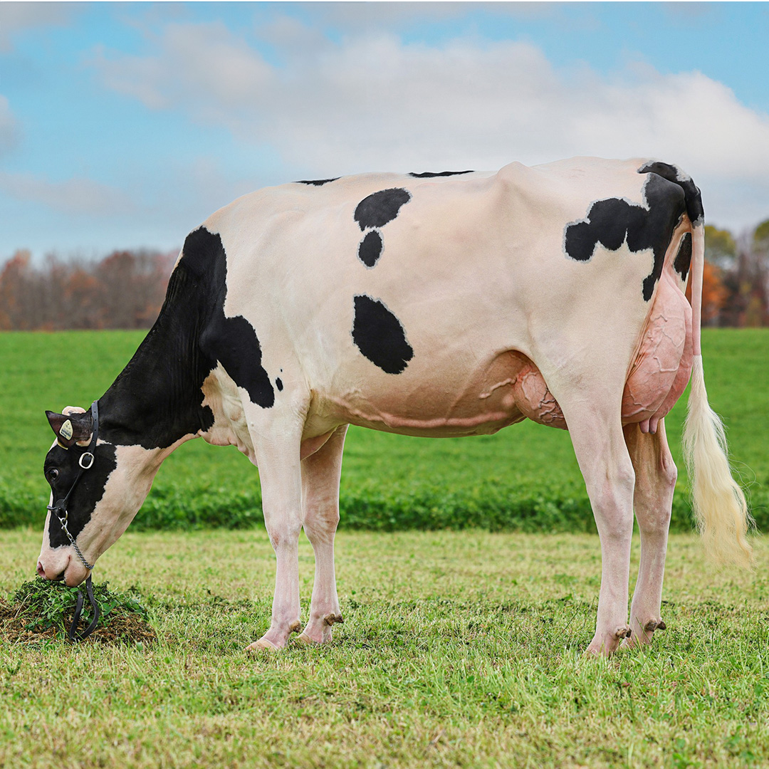 A promising Detective daughter is recently pictured in Canada! She is one of the promising daughters from Blondin Detective (Alligator x Crushabull x Hotline) and classified with VG-86-CAN 2yr. with VG-86 for her Mammary System! Magolait Detective Rolo VG-86-CAN 2yr. was 2nd in her class with Summer Yearlings Ayer's Cliff 2024 and is straight from an EX-90 EX-93-MS Delta-Lambda daughter going back to the famous Comestar Laurie Sheik VG-88-CAN. This family delivered many interesting heifers and bulls with for example Suami VG-86-NL 2yr., the Subzero sister to the daughterproven sire Westcoast Lambeau @ Semex and is dam to DG Stewart @ Cogent at +3273 GTPI, DG Septimus @ Inseme at +3238 GTPI, DG Stix @ Inseme at +3186 GTPI and to DG Seaborn @ AI-Total at +3186 GTPI.