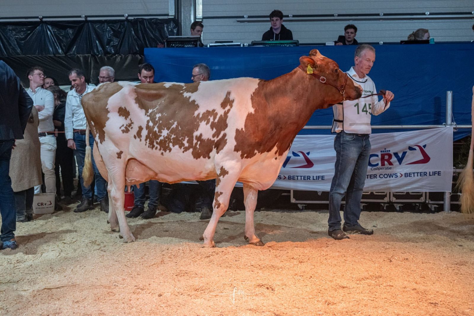 She has earned the EXCELLENT predicate, the Red & White Fontoy daughter: Beeze Judy 16! This 12 years old Fontoy *RC offspring from the Morningview Converse Judy EX-93 cow family scored EX-92 for her Dairy Strength and EX-92 for her Mammary System which resulted in EX-90 in the Netherlands. She was Res. Senior Champion Wintershow Zwolle 2025, is now in her 10th lactation and has a lifetime production of 126.651kgM with 9.229kg combined F+P! Another highlight during this classification round was the 2yr. old Beeze Roza 129! She is a Delta Flagstone daughter, classified with VG-87-NL 2yr. with VG-87 Mammary System.