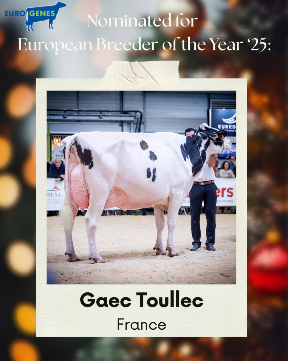 Gaec Toullec is a farm with 3 generations and are milking 110 cows with 160 heifers. The herd has intensified its selection for 15 years by investing in heifers or embryos from renowned families in France or North America and working with ET transplantions. Gaec Toullec is a partner of the Genes Diffusion breedingprogramm, to create bulls and heifers who are interesting for foreign insemination centers, combining high indexes in higher morphology. The families of CAPJ Bolton Cherry, JB Toullec Roy Roxy, NH Aschley and KHW Regiment Apple in particular are massively worked, with this year, more than 50 flushes, and some heifers are in the IVF programm. Current examples bred by Gaec Toullec are the bulls ALI RED JBT sold to SEMEX, THE ALPS JBT, sold to ABS St JACOBS and ALAN JBT, sold to ASCOL.
