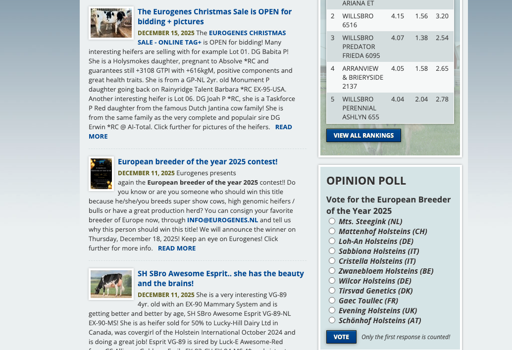 Eurogenes organizes for the 2nd time the European Breeder of the Year 2025 contest! With a great line-up of breeders in Europe. In total 10 breeders are entered for the competion from Europe with a great influence for the breed. Pick your favorite breeder of 2025 before thursday december the 18th, 05.00 p.m. (Dutch Time).